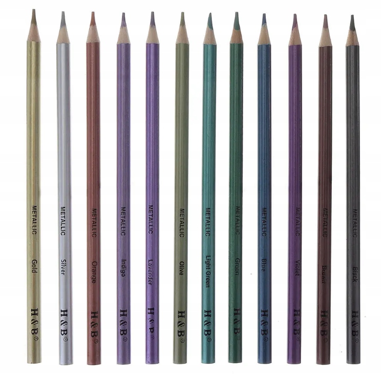 - 12 штук металлических мелков интересных цветов, которые также эффектно смотрятся на темной и черной бумаге