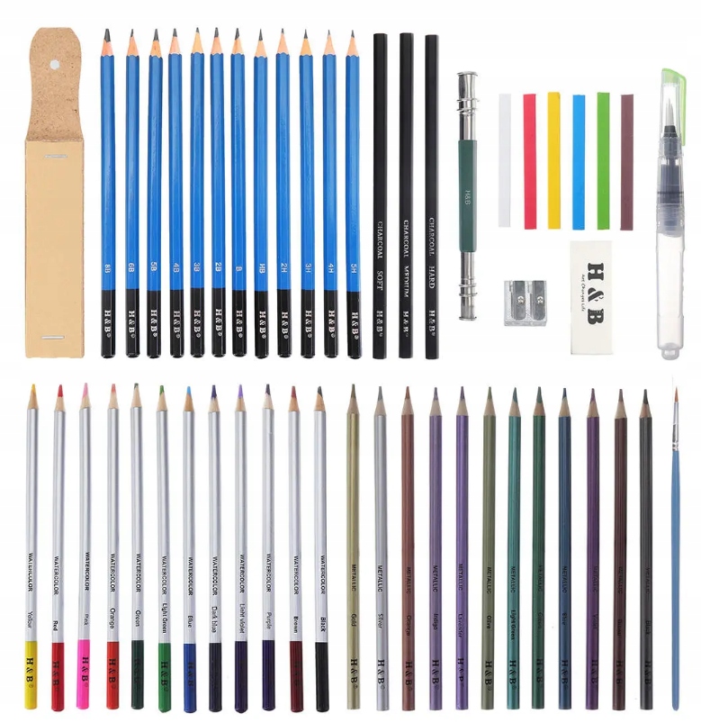 Усовершенствованный художественный набор от H&B для универсального использования, для создания рисунков, эскизов, раскрашивания, и с использованием различных техник живописи и рисунка.