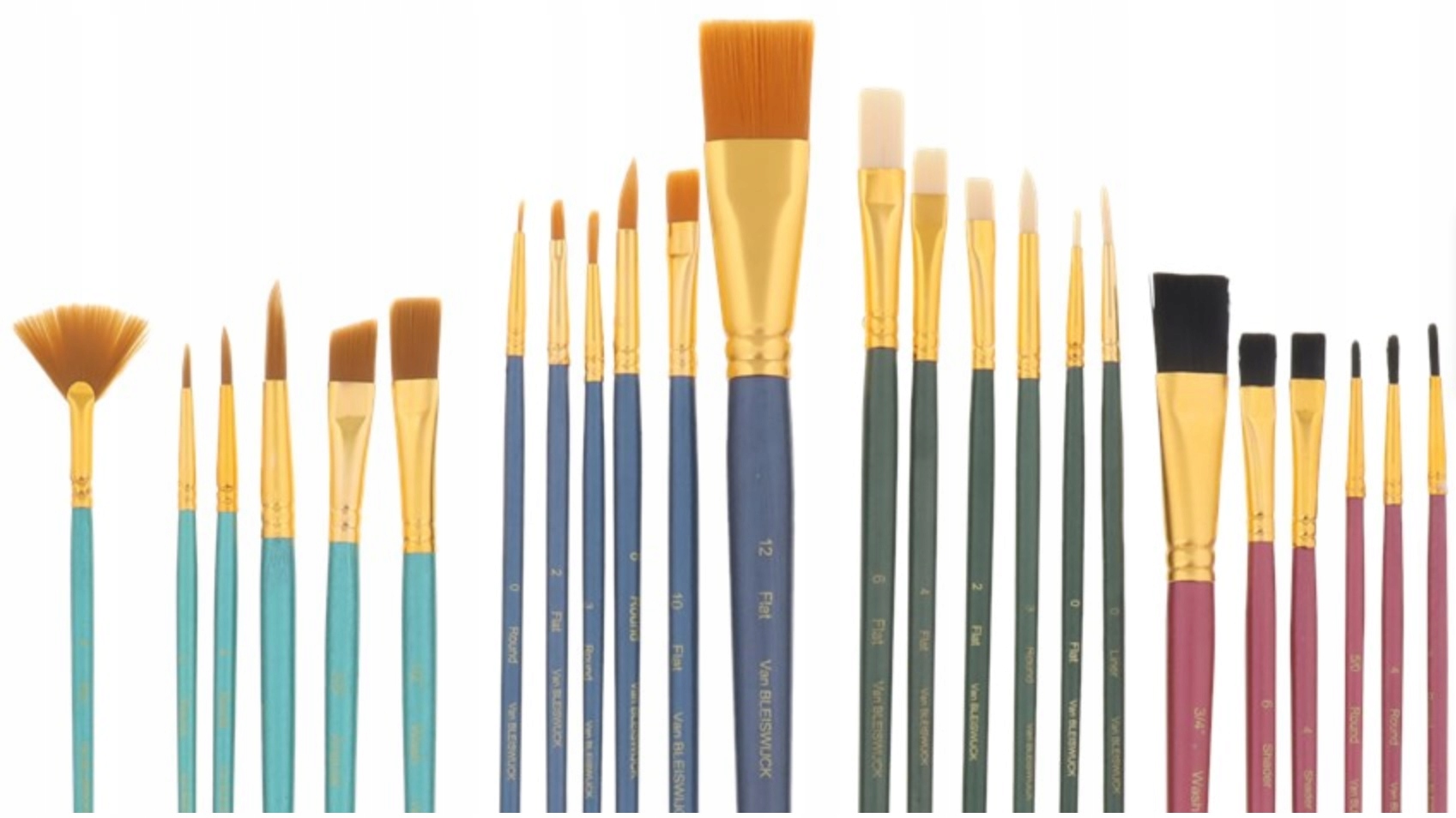 - В наборе 24 кисти различных размеров и форм и предназначены для различных типов красок.