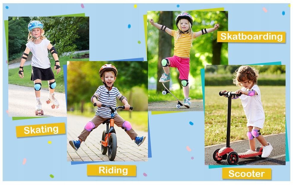 ➡ В комплект входят 2 наколенника, 2 налокотника и 2 налокотника, обеспечивающие полную защиту вашего ребенка во время игры на свежем воздухе.