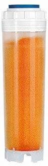Фильтрационный картридж с ионообменной смолой смягчает воду, удаляя ионы кальция и магния, которые вызывают ее жесткость. Чрезмерная жесткость воды приводит к образованию накипи на нагревательных элементах стиральных, посудомоечных машин, электрочайников и другой бытовой техники, а также вызывает больший расход моющих и посудомоечных средств. Срок службы картриджа со смолой заканчивается, когда ионообменная емкость картриджа со смолой исчерпана. Это зависит от жесткости и количества фильтруемой воды.