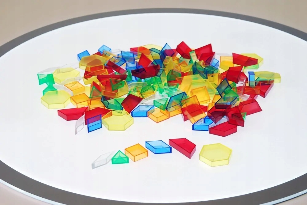Четкие пластиковые шаблоны геометрических тел 6 форм и 6 цветов для использования при построении узоров и построении последовательности, для подсчета и сортировки или для распознавания цвета и формы.