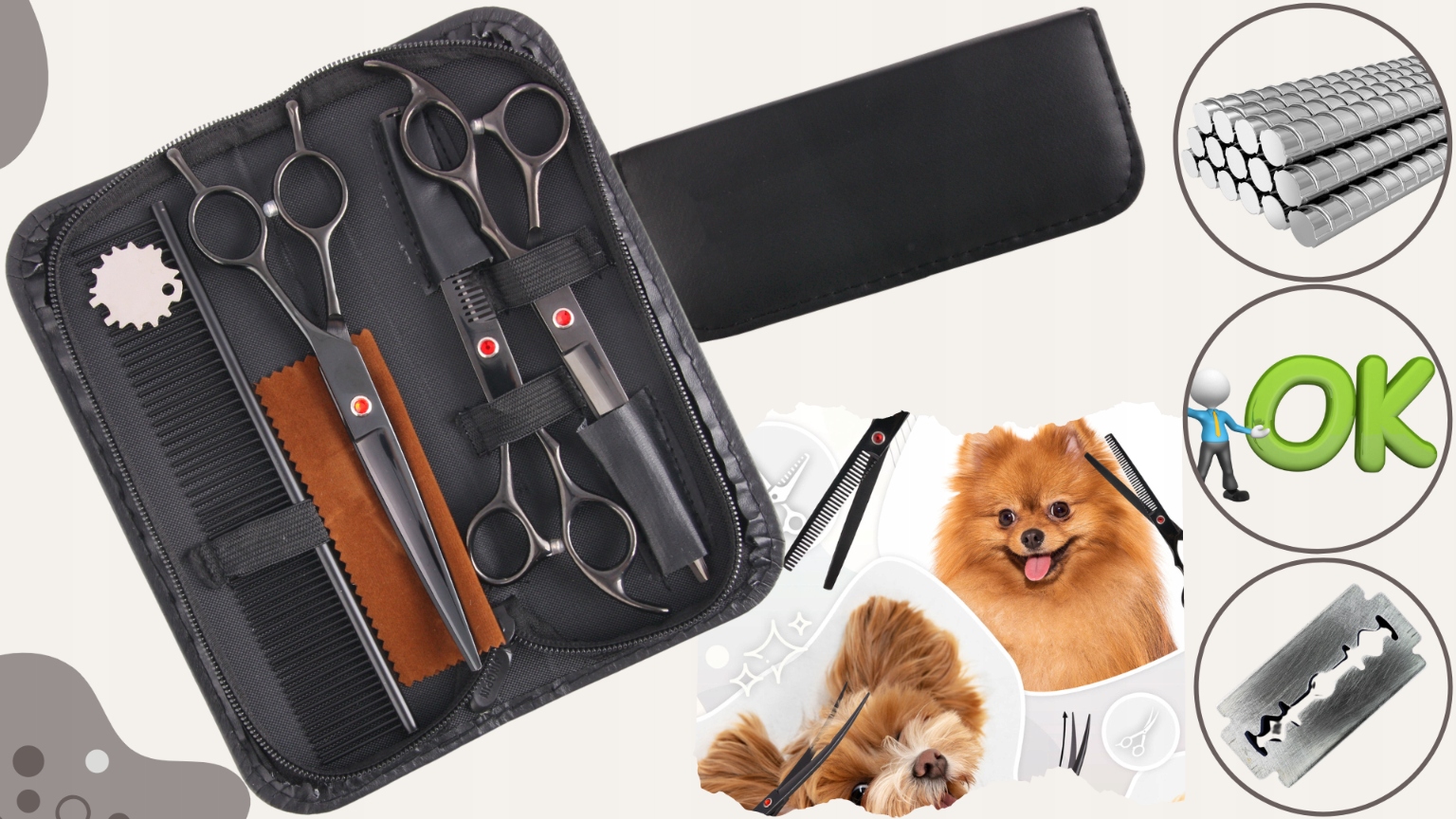 ✅ , состоящий из 6,5 -дюймового запасного, 2 пары из 7 -дюймовых ножниц и расческа. Предназначен для профессионалов и начинающих жениха.
