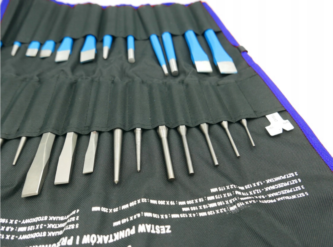 Набор долот, пробойников и пробойников из хромованадиевой стали.