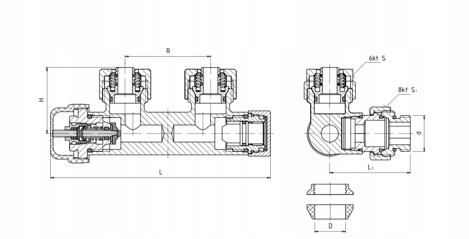 - Дуоплексный комбинированный клапан с межсоединительным расстоянием 50 мм.