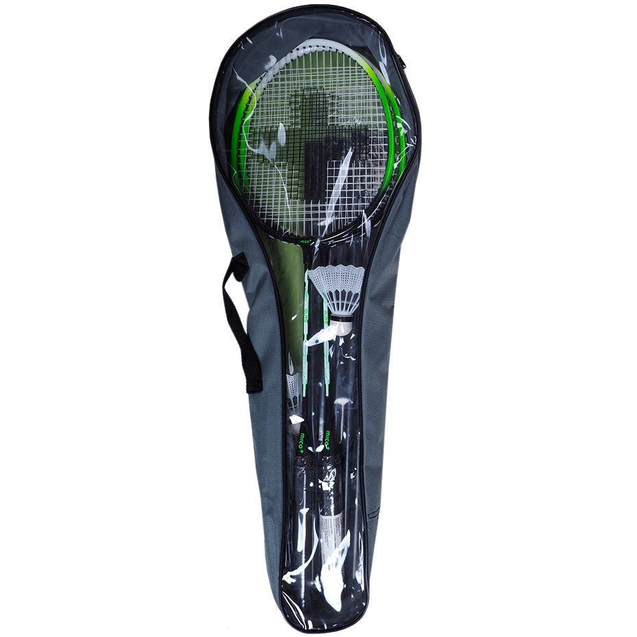 Набор для бадминтона Mico предназначен для игроков различного уровня подготовки. В практичном кейсе находятся две легкие ракетки, два волана с нейлоновыми корзинами, а также стойки и сетка для создания поля. Чехол на молнии обеспечивает удобство переноски и хранения.