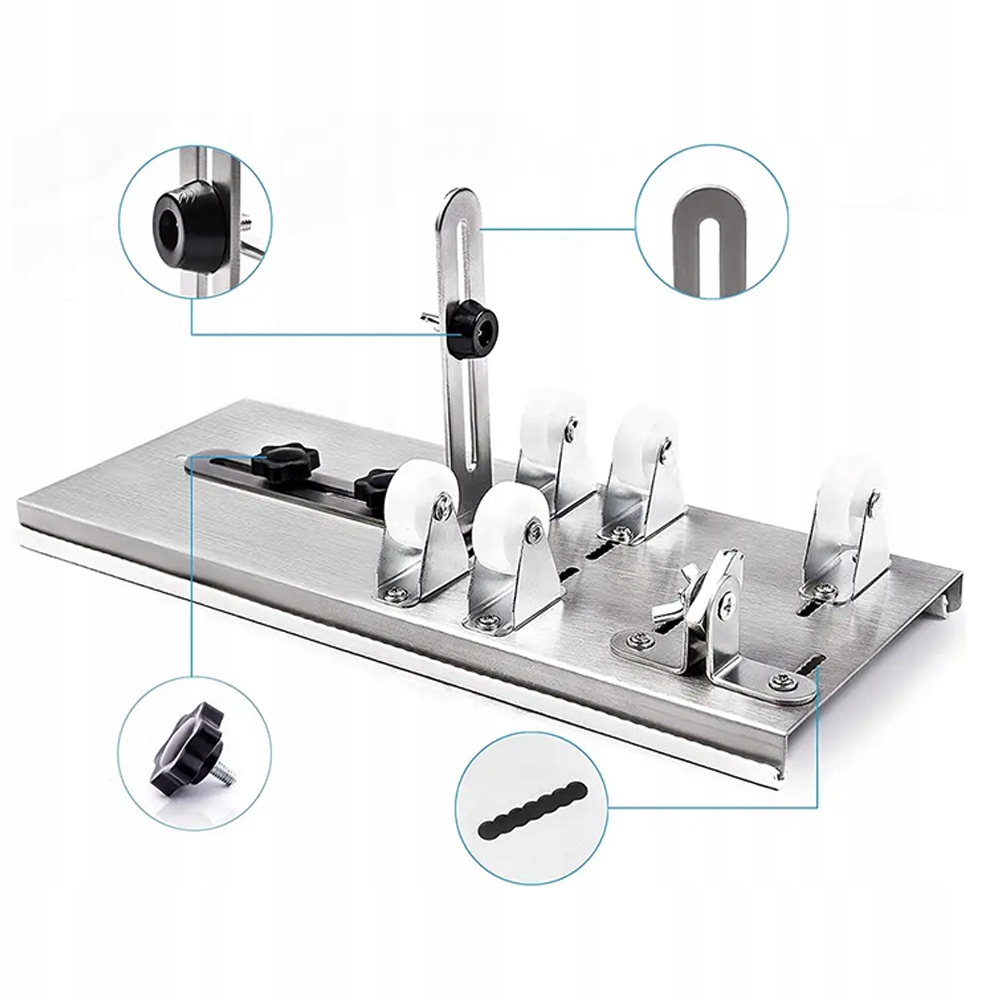 ✅ Стеклорез с L-образной рамой. Конструкция с пятью колесами из нержавеющей стали. Регулируемое положение резки.