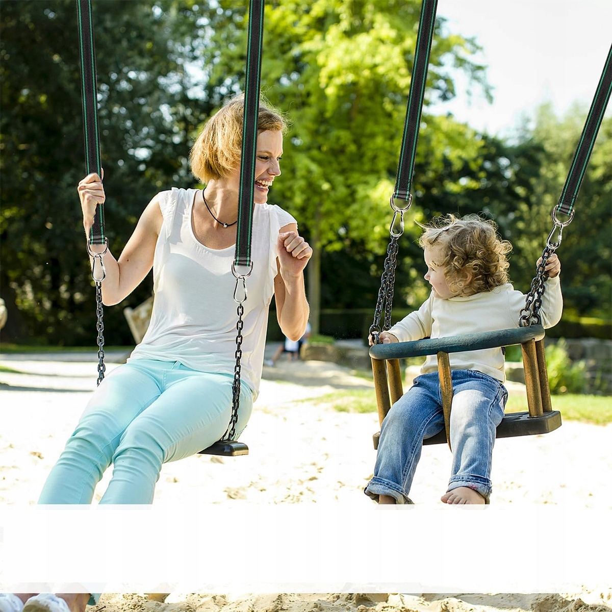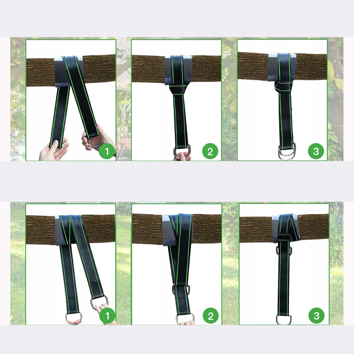☘️Навесное крепление для качелей 900 кг, крепление для гамака, все в комплекте, 2 ремня для гамака 150 см * 5 см + 2 карабина + D-образные кольца + сумка для хранения + накладка для защиты деревьев, веревка для гамака (черная и зеленая)☘️