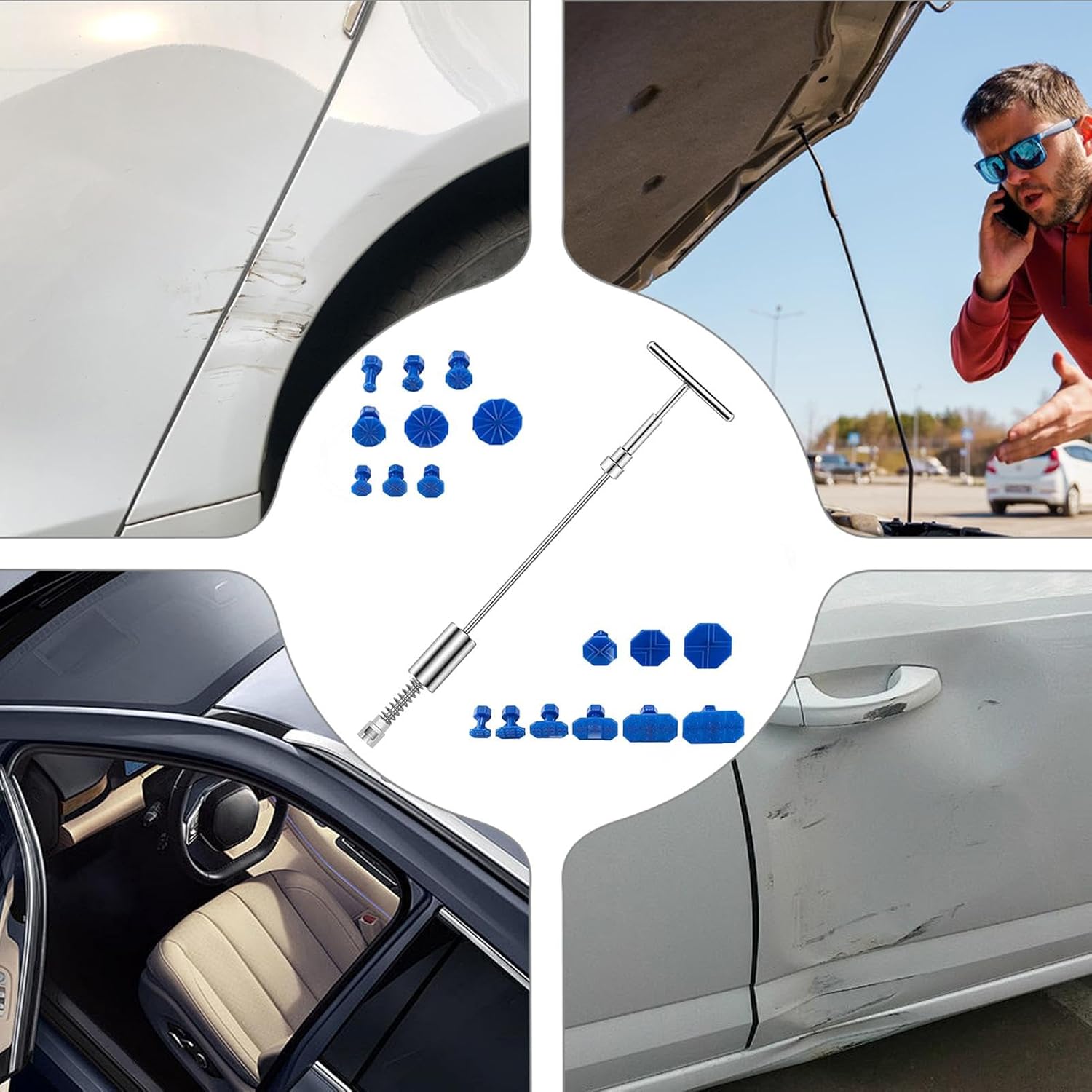 🚗【 Стандартный материал из нержавеющей стали】 инструмент для правых вмятин без автомобиля. В зависимости от конструкции данного ролика, закаленная нержавеющая сталь с высоким содержанием углерода и стандартной нержавеющей стали. Участок и долговечный пластик не повреждают поверхность автомобиля, очень долговечны и долговечны. Свяжитесь с высоким качеством резиновой упаковки в корпусе, чтобы избежать повреждения исходного лака. Вогнутый мост с уникальным дуговым мостом может отрегулировать расстояние и повернуть кнопку, чтобы получить лучшее соответствие. Потратить и сбережения. В общей сложности 18 профессиональных выступлений могут быть определены против многих вмятин. Праведный подъем также может быть отрегулирован в зависимости от размера банки. Эффективная работа автомобилей, холодильников, стиральных машин и других следов металла