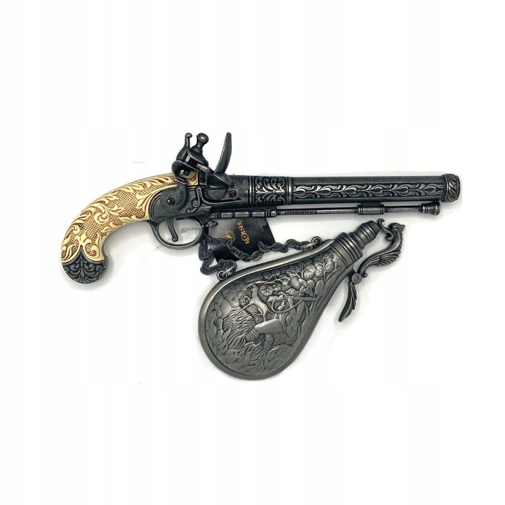 Kolser - Fau Dcheration и бельгийский пистолет Liege Kolser создает копию бельгийского пистолета с 18 -го века. Оригинал имел каменный механизм и ручной перезагрузку. Они использовались до начала 19 -го века, и, благодаря низкой эффективности, они использовались только в качестве дополнительного оружия, в котором необходимо было использовать мечи. Сделано из металла со скульптурой, бегущей от спускового крючка до конца ствола. Кроме того, его ручка изготовлена из смолы и украшена гравированным металлическим набором. Целое составляет 30 см. Материалы, используемые для его производства, гарантируют его долговечность и обслуживание. Не упустите возможность получить эту впечатляющую, эксклюзивную копию, которую вы сможете похвастаться всеми своими гостями.