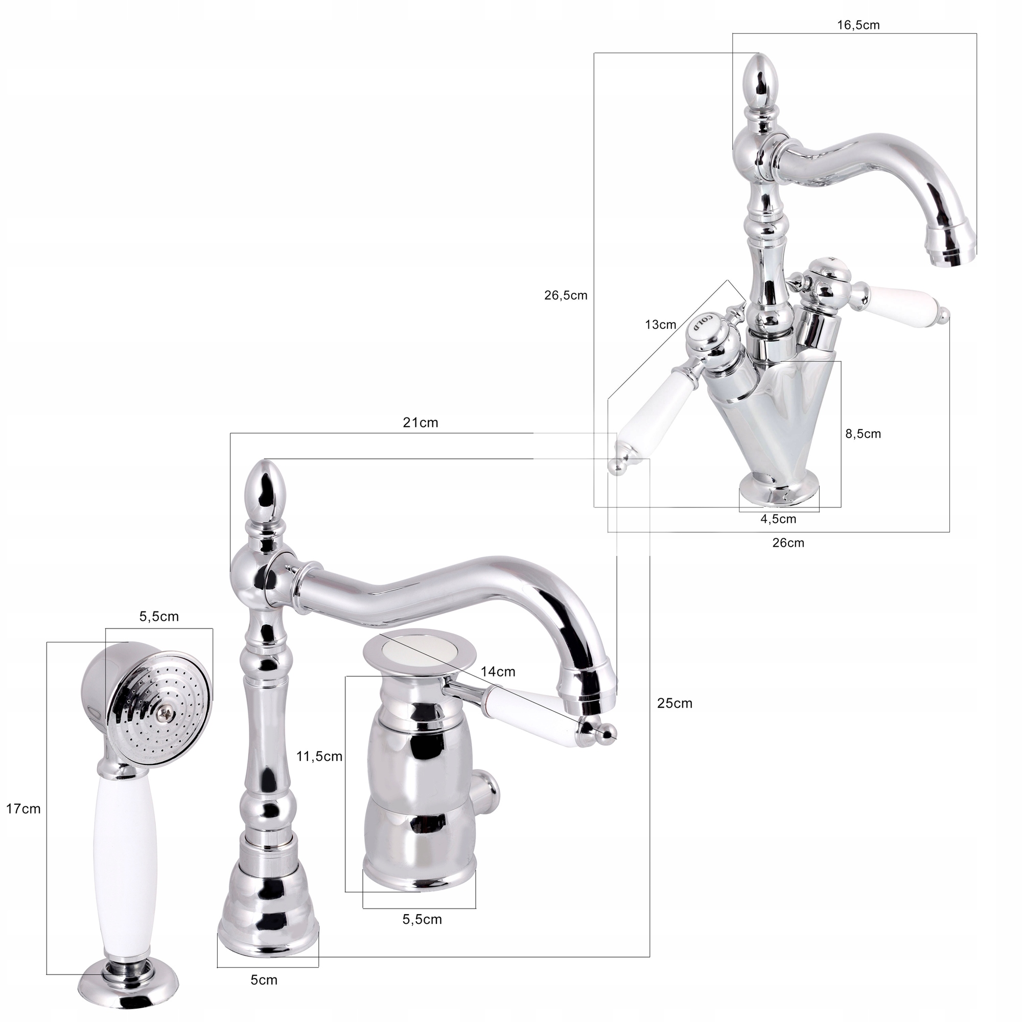 Набор ретро 3-луночный смеситель для ванны