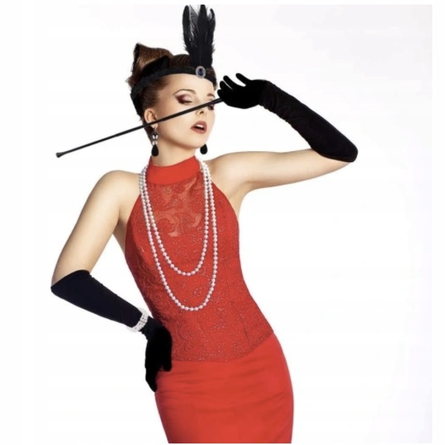 Кроме того, декоративные драгоценно -драгоценные перо на ретро -группе, блестящие серьги и ожерелье с жемчужинами привлекают внешность и придают всем уникальным персонажу. Сатинированные перчатки, изготовленные из гибкого полиэстера с длиной вдохновенной винтажной, подчеркивают стиль и идеально сочетаются с остальными элементами. Это набор, который позволит вам почувствовать себя особенным, стильным и уникальным - независимо от случая.