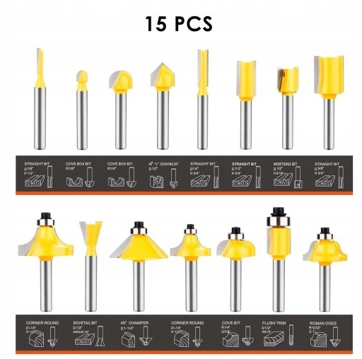 набор из 15 резаков оправки для деревообработки. для деревообработки и деревянных материалов с использованием фрезерной машины с ручкой Fi 8 мм.
