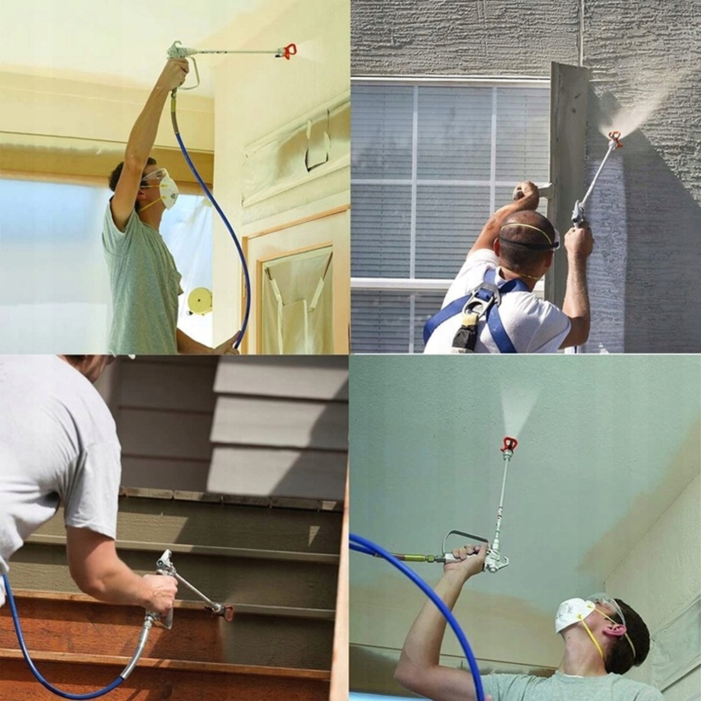 Это. Продукт эффективно устраняет любые неудобства, связанные с работой на лестницах и строительных лесах. Это также снижает нагрузку на спину и устраняет усталость при покраске крыш или полов. Кроме того, это помогает содержать инструменты в чистоте и обеспечивает лучший контроль при покраске стен. Это делает окраску распылением более эффективной, удобной и точной, позволяя добиться отличных результатов без особых усилий.