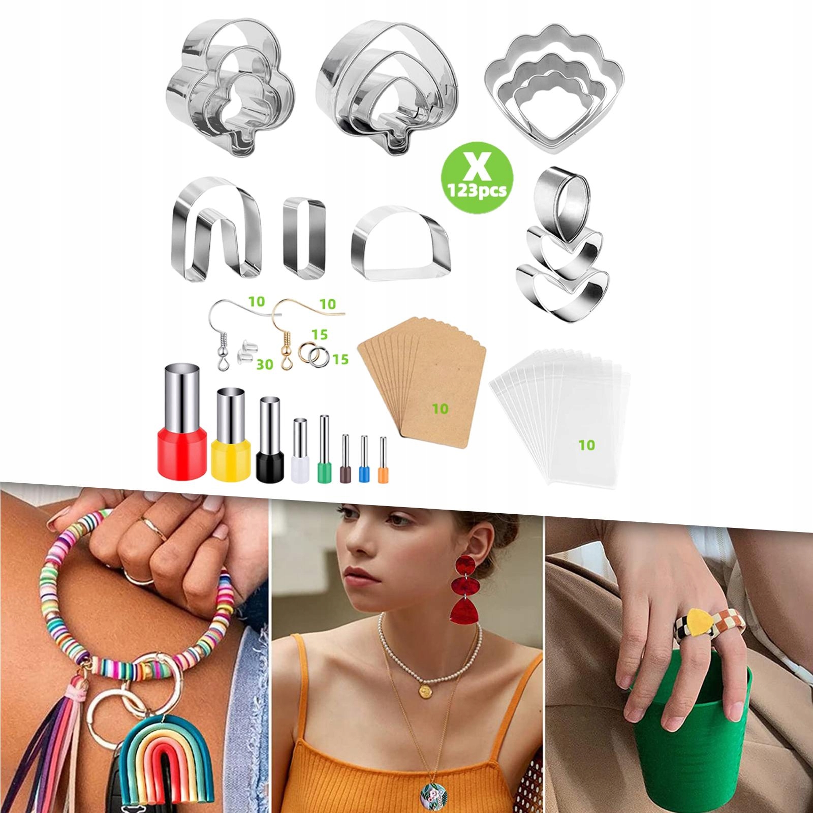 Набор из полимера: серьги из полимерной глины, форма-кольцо, карточки для сережек, самоклеящиеся пакеты, крючки для сережек и т. д., всего 123 шт.