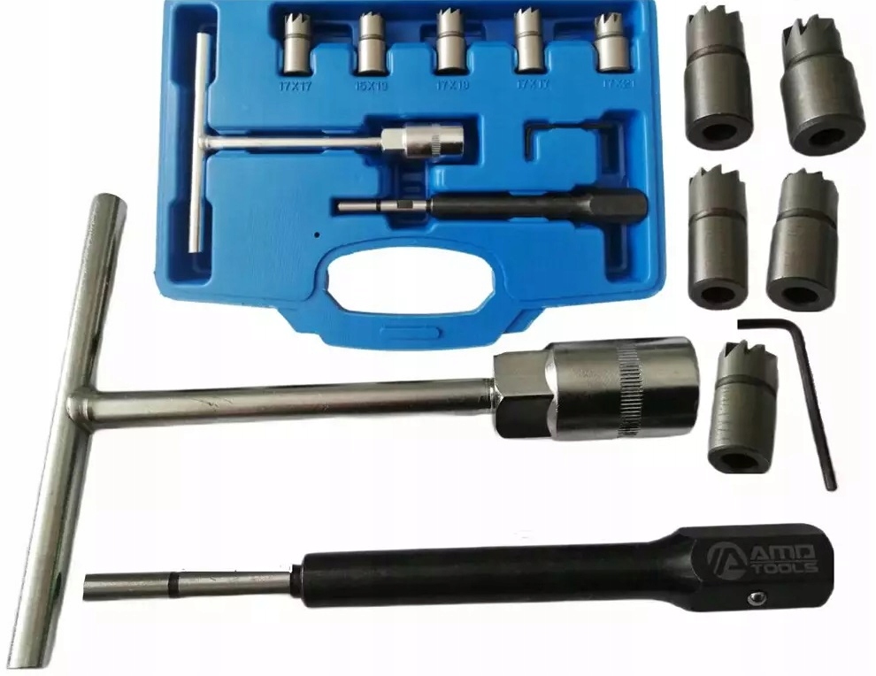 Он быстро и легко удаляет гвоздь из розетки инжектора, позволяя регулировать инжектор в гнезде. Набор используется в большинстве пассажирских транспортных средств, производимых после 2000 года.