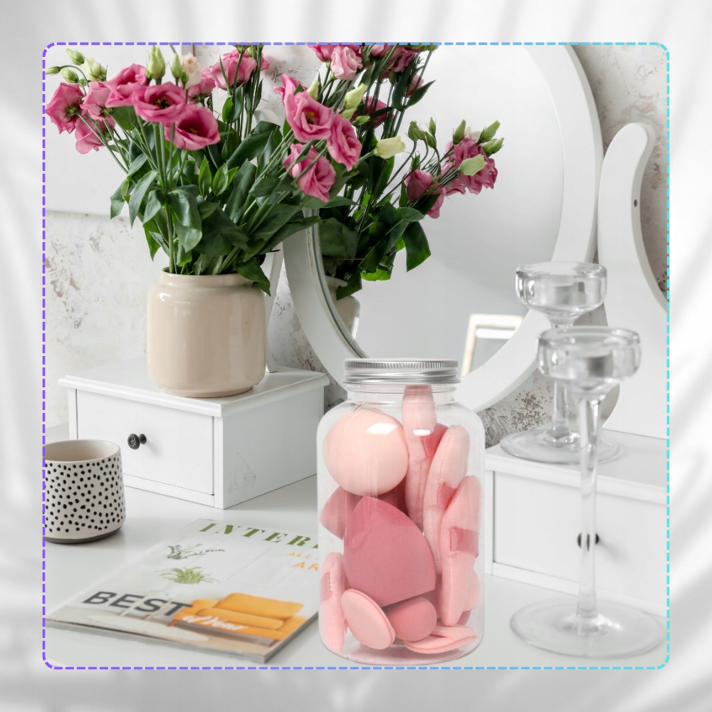 ✅ Весь набор упакован в элегантную баночку, которая не только защитит продукты от загрязнений, но и станет стильным элементом вашего туалетного столика. Благодаря компактной упаковке спонжи для макияжа удобно хранить, и их можно брать с собой в путешествие.