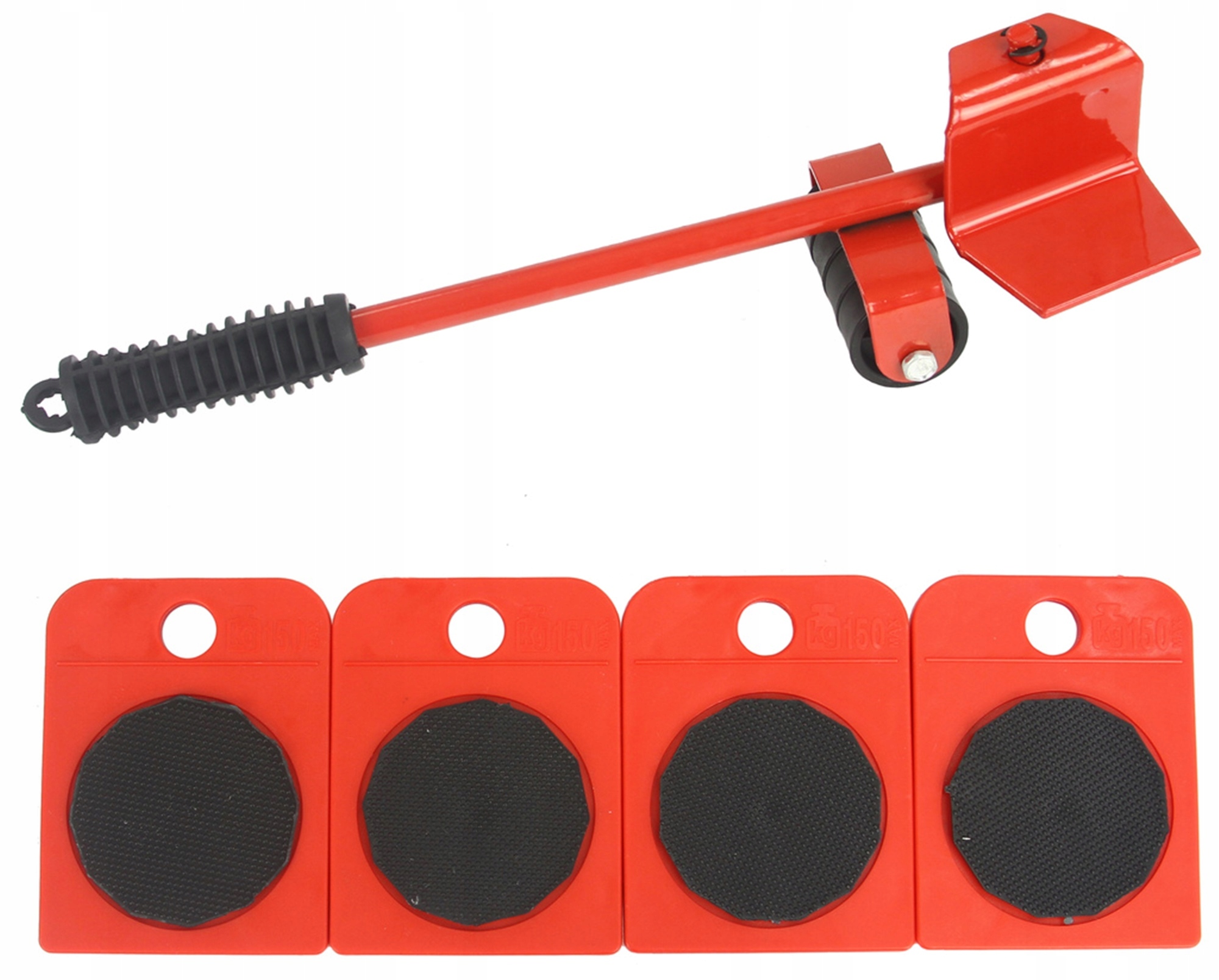 В комплект также входит стальной рычаг, благодаря которому можно поднять мебель, а затем сдвинуть ее. подушечки под него.