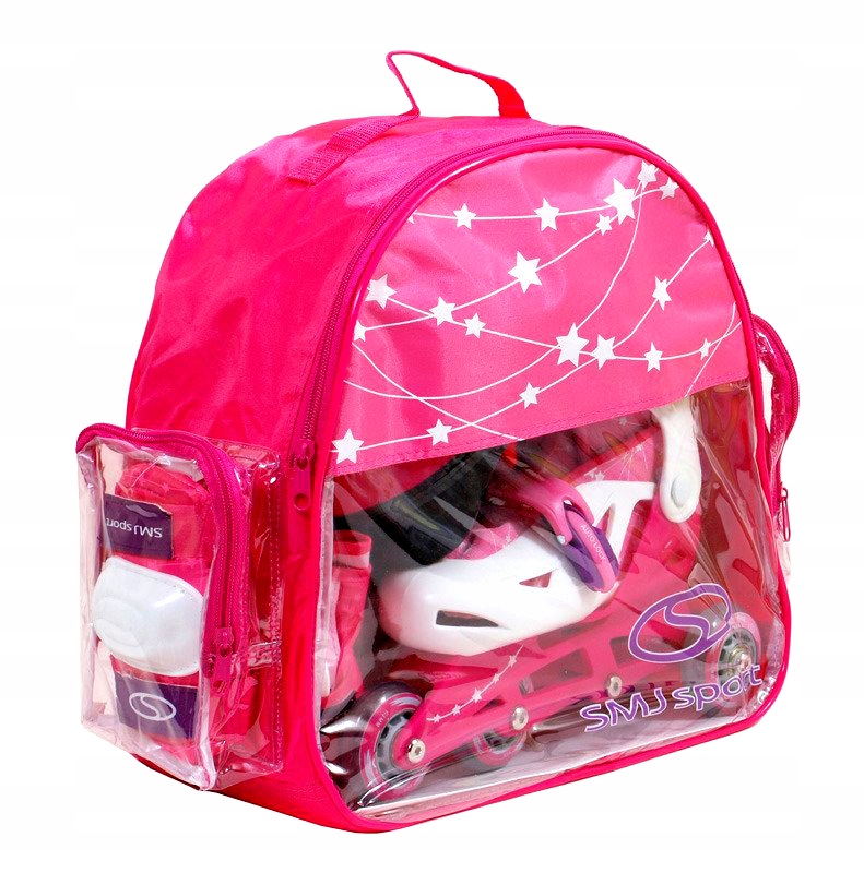 ✨КОМБО-набор спортивной модели SMJ КОМБО-НАБОР BS901P 2в1 РОЗОВЫЙ: роликовые коньки - роликовые коньки + шлем + комплект защит + практичная сумка✨