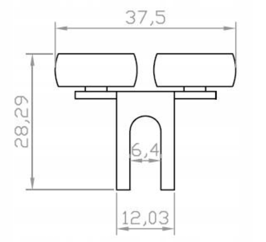 - 2 верхняя направляющая с подшипникамидля симметричного профиля, расстояние 37,5 мм