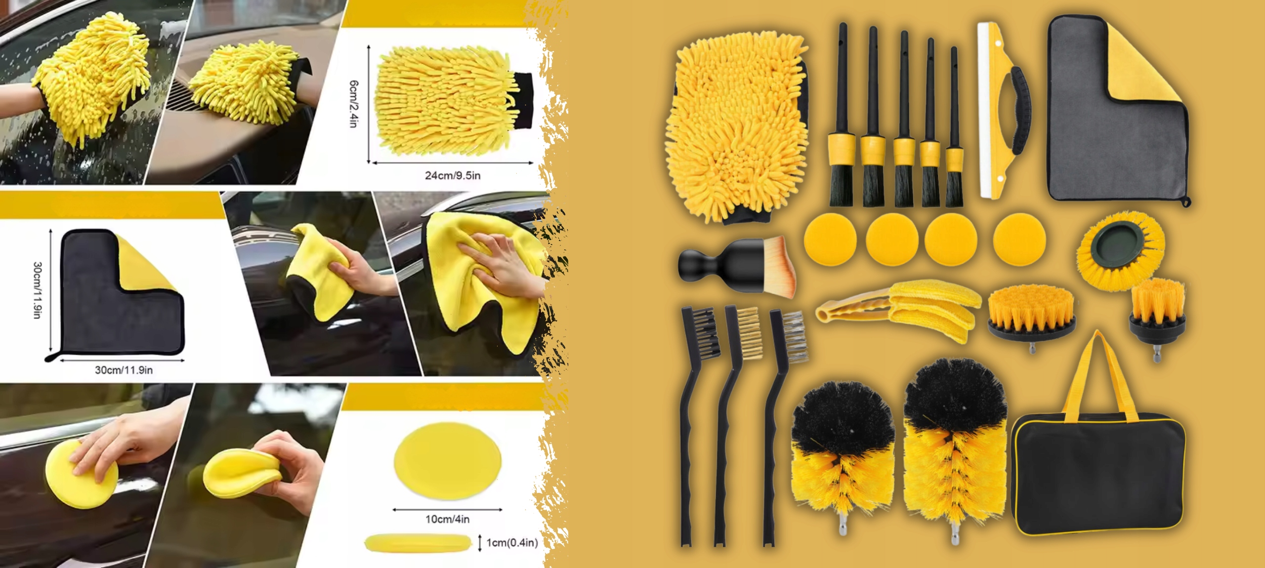 ➡ 22 Универсальные инструменты в одном наборе - все, что вам нужно для комплексного ухода за автомобилем, от дисков до обивки. Высококачественные материалы - безопасные для лака и поверхностного, долговечного и эффективного. H2> ➡ Практическая сумка для хранения - все аксессуары всегда под рукой, идеальная организация и мобильность. h2>