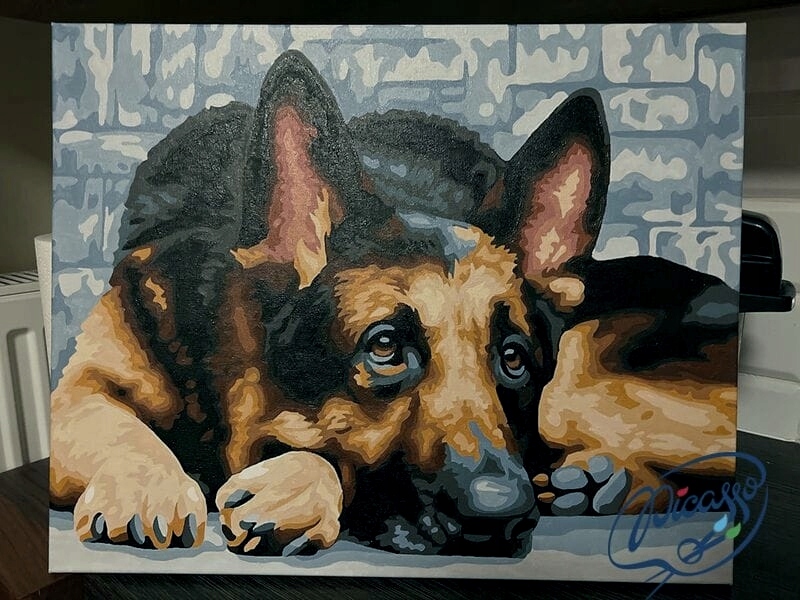 На холсте есть зоны с напечатанными на них номерами, которые необходимо закрасить краской с числовым присвоением.