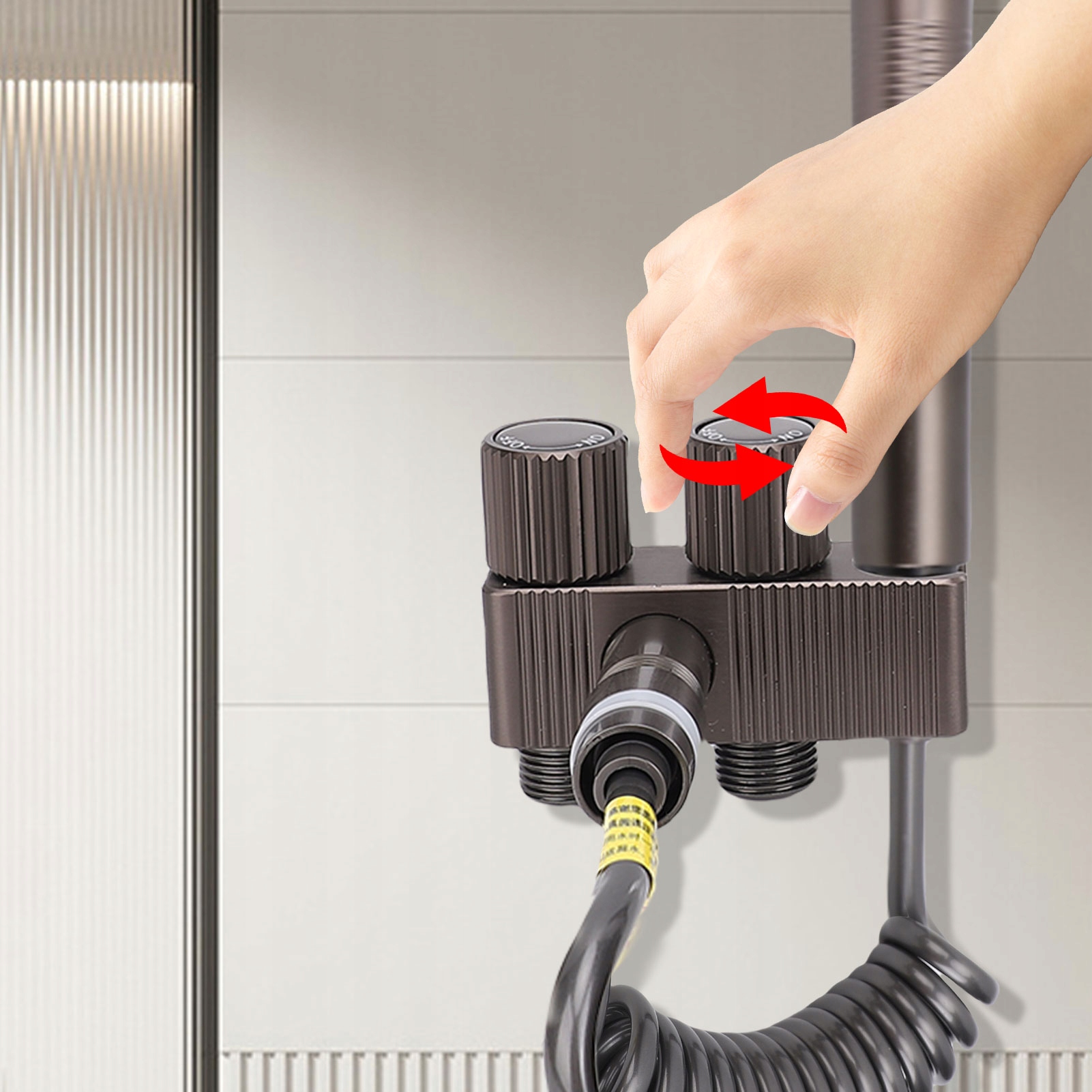 2. Двойная функция: с 2 режимами выхода воды (режим деликатного пены, мощный режим душа), чтобы удовлетворить различные потребности. Двойная конструкция водяного клапана, один управляет опрыскивателем, а другой управляет краном.