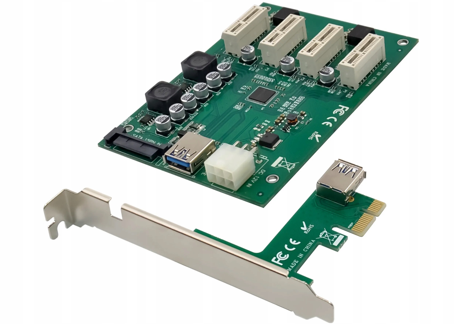 Набор для расширения для PCI-X1 до 4x PCIE-X1 является хост-контроллером пакетного переключателя PCIE, с одним портом PCI-X1 Gen2 до 4 PCIE-X1 GEN2 PART. Он может быть расширен до 4 портов PCIe X1, чтобы подключить различные устройства PCIe для использования большего количества портов PCIe на материнской плате.