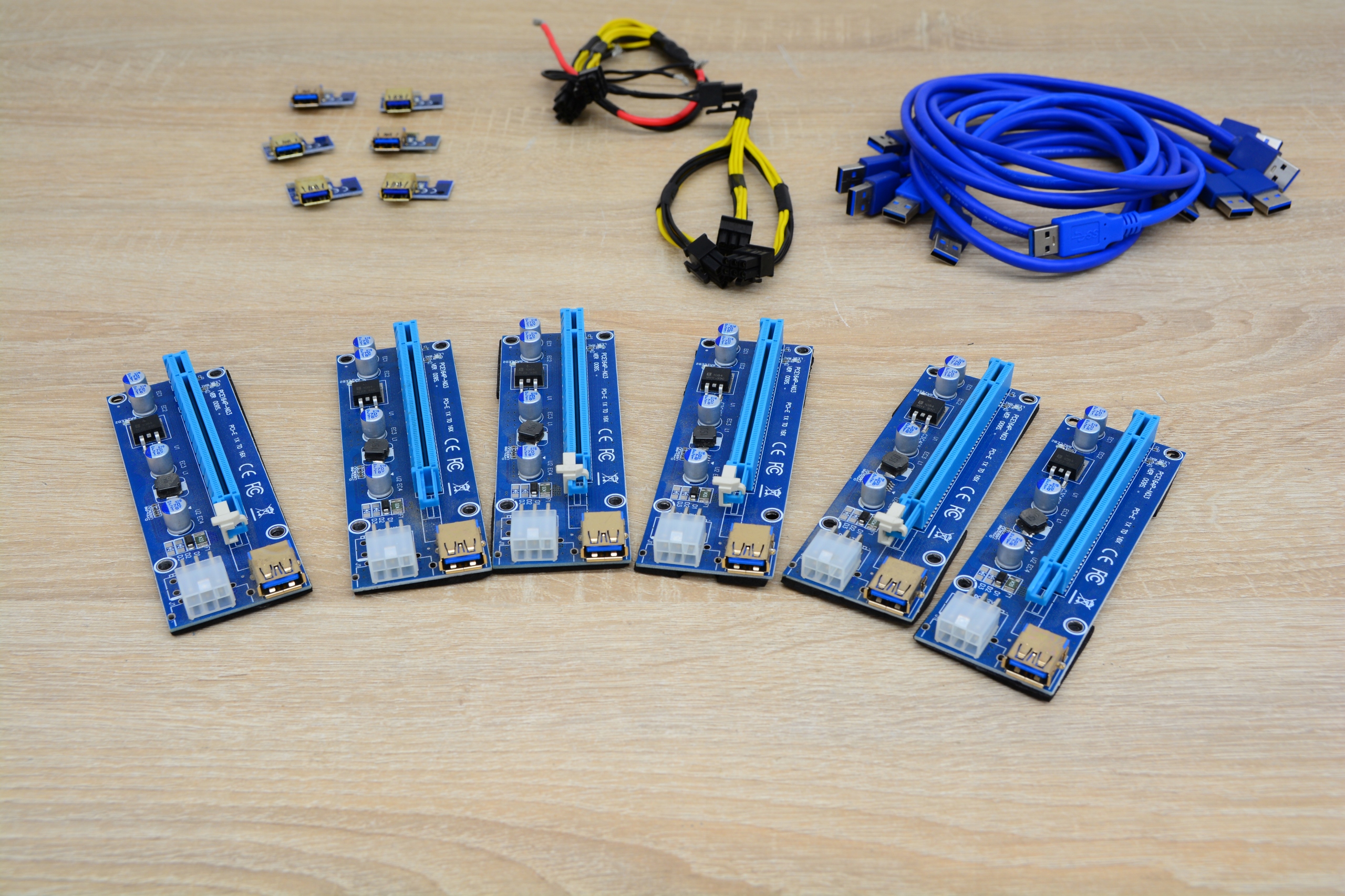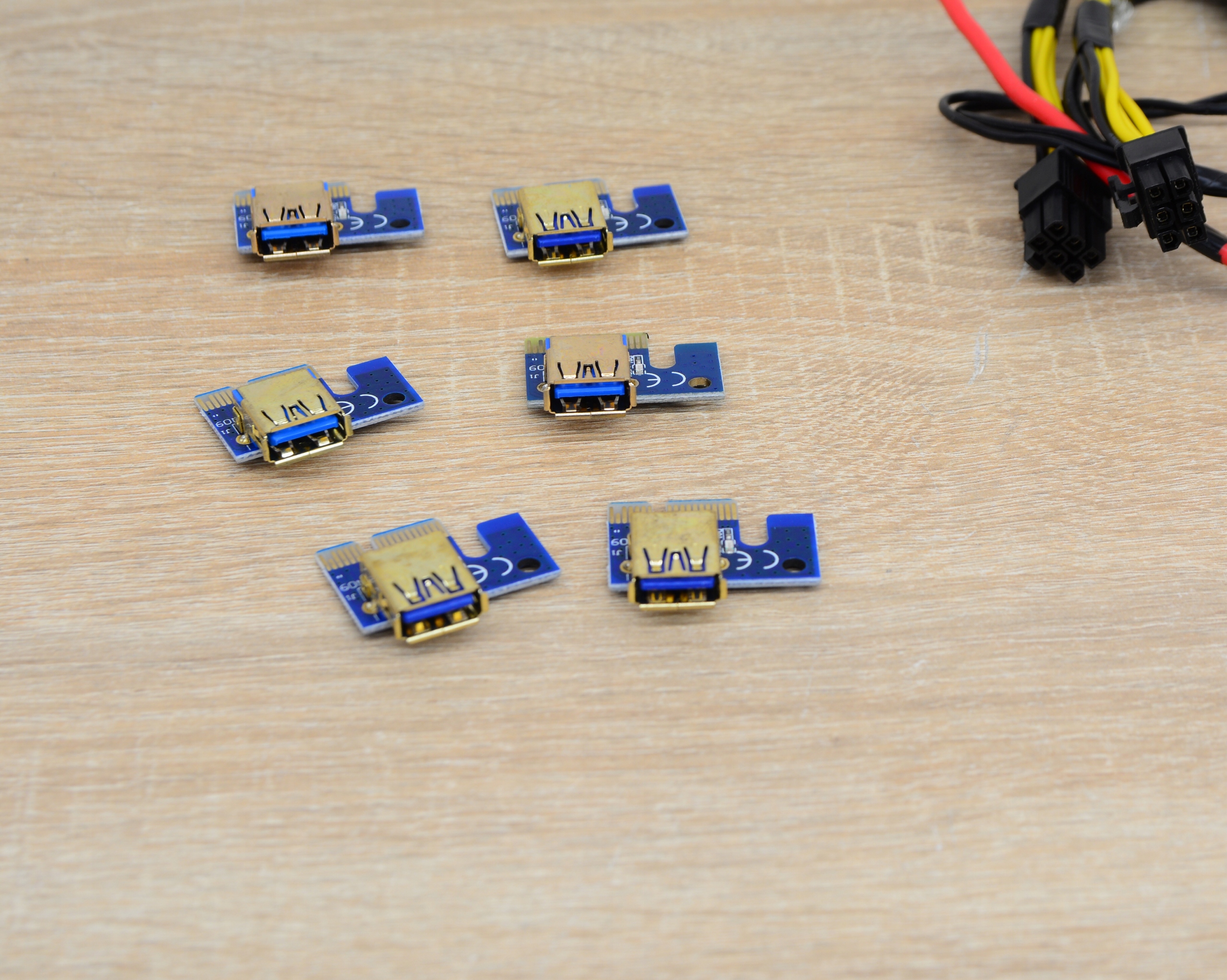Набор расширений руководителей из 6 штук, Apklvsr PCIe Riser PCI -E 009S 1 X до 16 X Adapter Adapter Adapter с светодиодами, с USB 3.0 60 CM, расширяющим кабель SATA, до 6 -ядворного молекса Good, Goods - от выставки магазина - без кабелей SATA. Нет оригинальной упаковки.