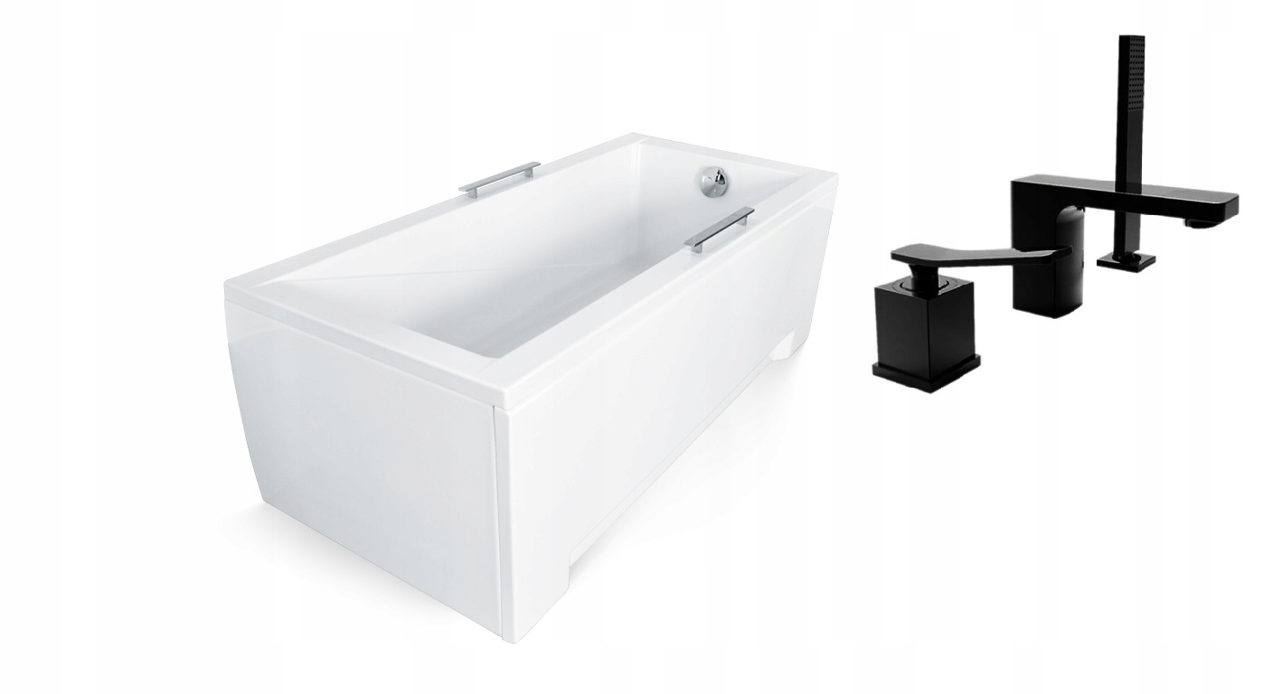 Современный комплект для ванны 160х70 см PL от Besco+ черный смеситель 3-х этажный + подголовник для ванны + ручка (1 шт.)
