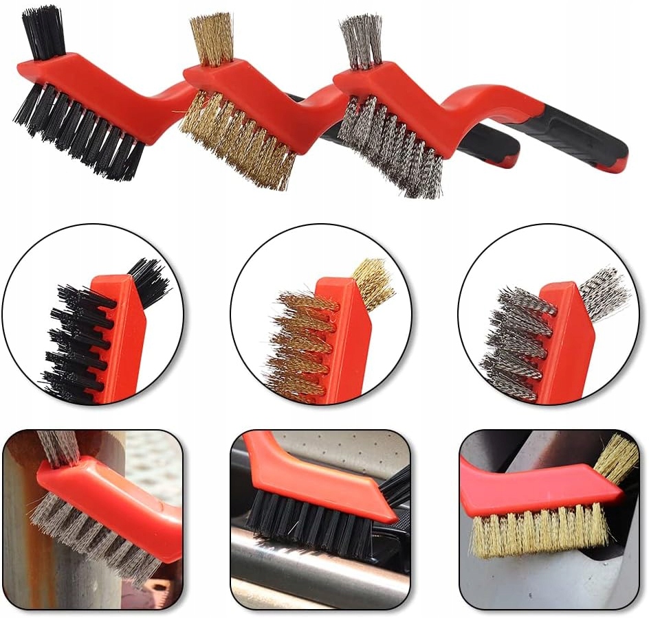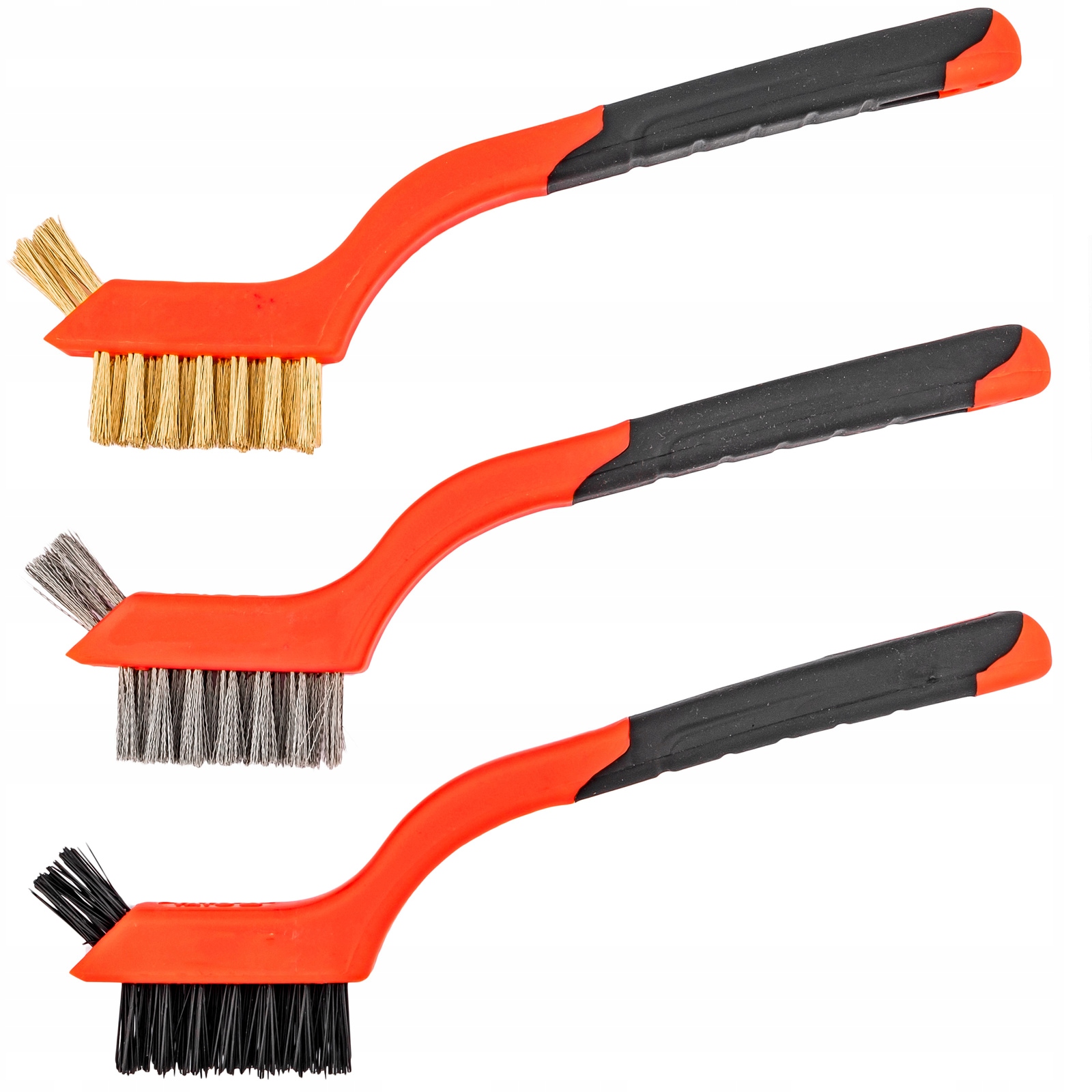 Набор из трех ручных щеток идеально подходит для удаления ржавчины, краски, пыли и других загрязнений с металлических, стальных, деревянных и пластиковых поверхностей. В набор входят щетки с разными свойствами - стальные, нейлоновые и латунные - поэтому вы легко сможете подобрать инструмент к типу работы.