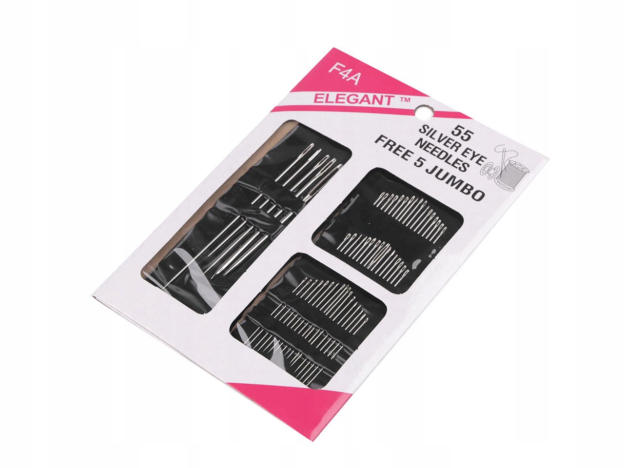 Набор универсальных игл для ручного шитья или вышивки. Вы найдете 55 штук игл разной длины, диаметра и размера ушка, кроме классических игл, есть джутовая игла, тупая игла для шерсти и длинные швейные иглы.