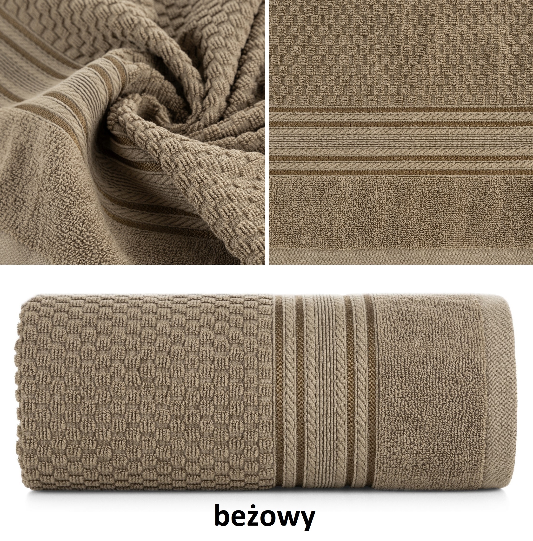 - Стильное хлопковое полотенце с рисовой структурой , которое сочетает в себе функциональность с элегантностью. Изготовлен из мягкого и высокого качественного хлопка , характеризуется исключительной поглощением и долговечности . Структура риса, то есть тонкий, выпуклый паттерн клетчатого, придает полотенцу приятную текстуру, одновременно увеличивая его способность быстро поглощать воду. Дно полотенце украшено широкой границей, законченной тонкими полосами. Маленькая декоративная строчка добавляет всю элегантность и изысканность, создавая гармоничную рамку, которая прекрасно сочетается с рисовой структурой ткани. Полотенце не только практично и удобно в повседневном использовании, но и является элегантным декоративным элементом , который добавит немного роскоши в ванную комнату. G/M2