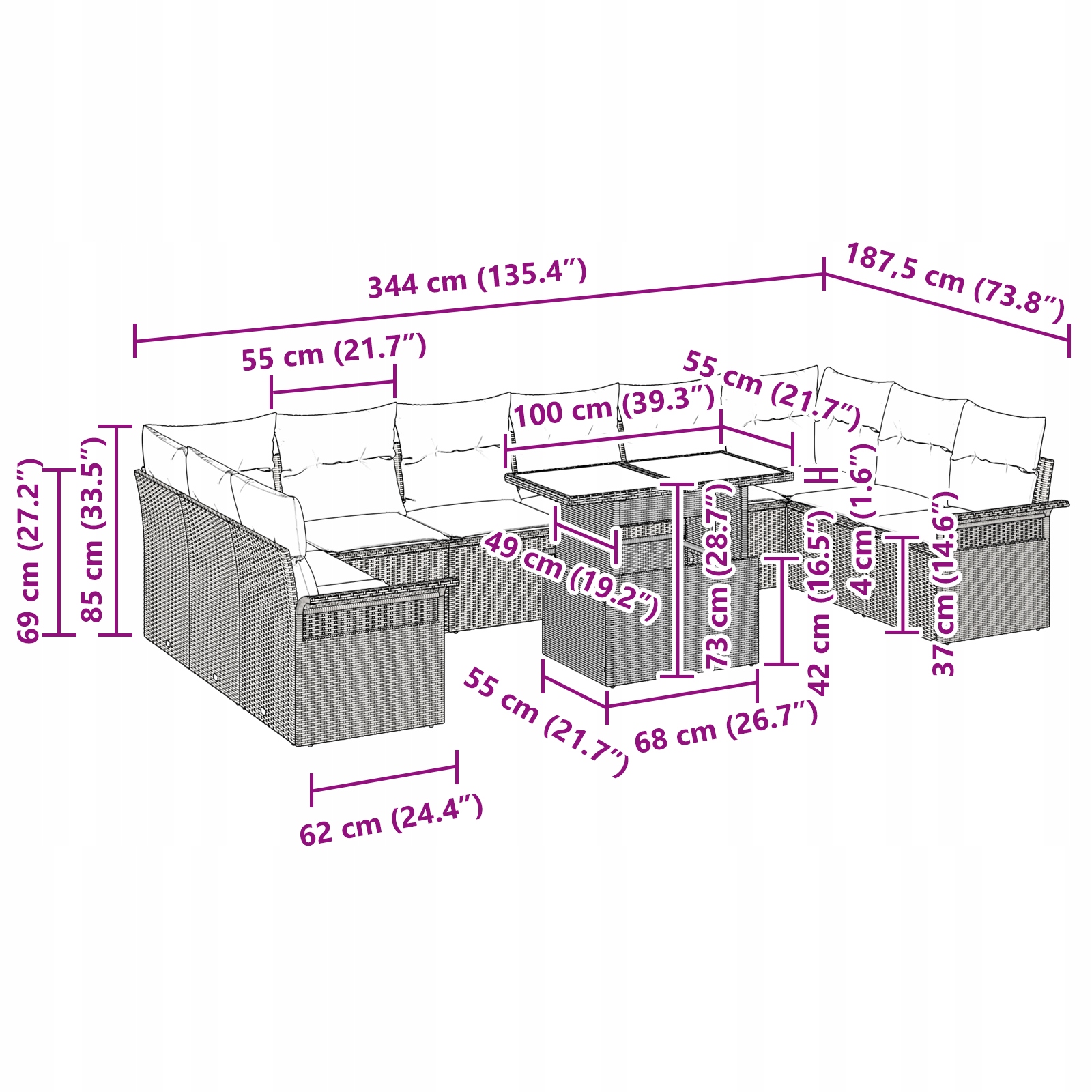 Набор садовых диванов из полиции, 11 элементов, бежевый, 10 человек