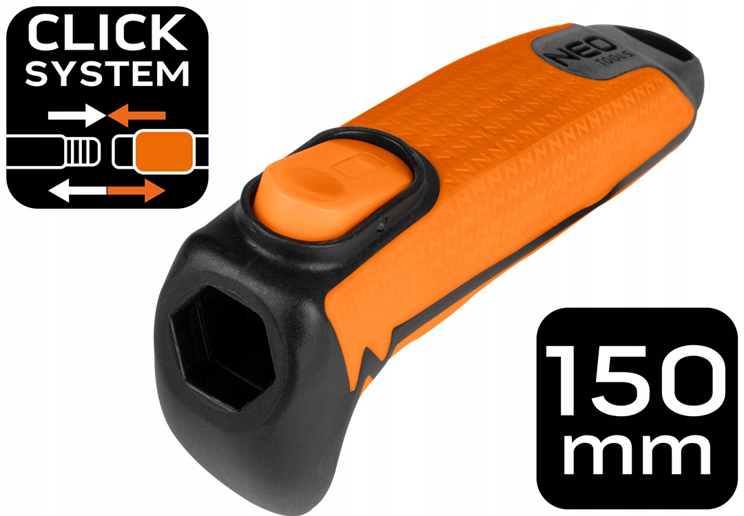 Модульная система NEO Click — это ответ на потребности как любителей, так и профессионалов. Благодаря короткой ручке с противоскользящим покрытием TPR все инструменты удобно лежат в руке, обеспечивая комфорт даже при длительной работе.
