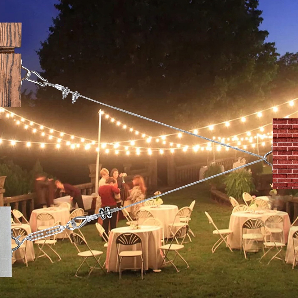 сталь с 3 мм нержавеющей стали может поддерживать широкий спектр тяжелых задач, включая подвеску внешних огней, натяжители фехтовальщиков, кабельные системы, пособия по лазании завода, натяжение провода к садовым заборам, внешние шторы, устойчивые к погодным условиям, навесы, стирки.
