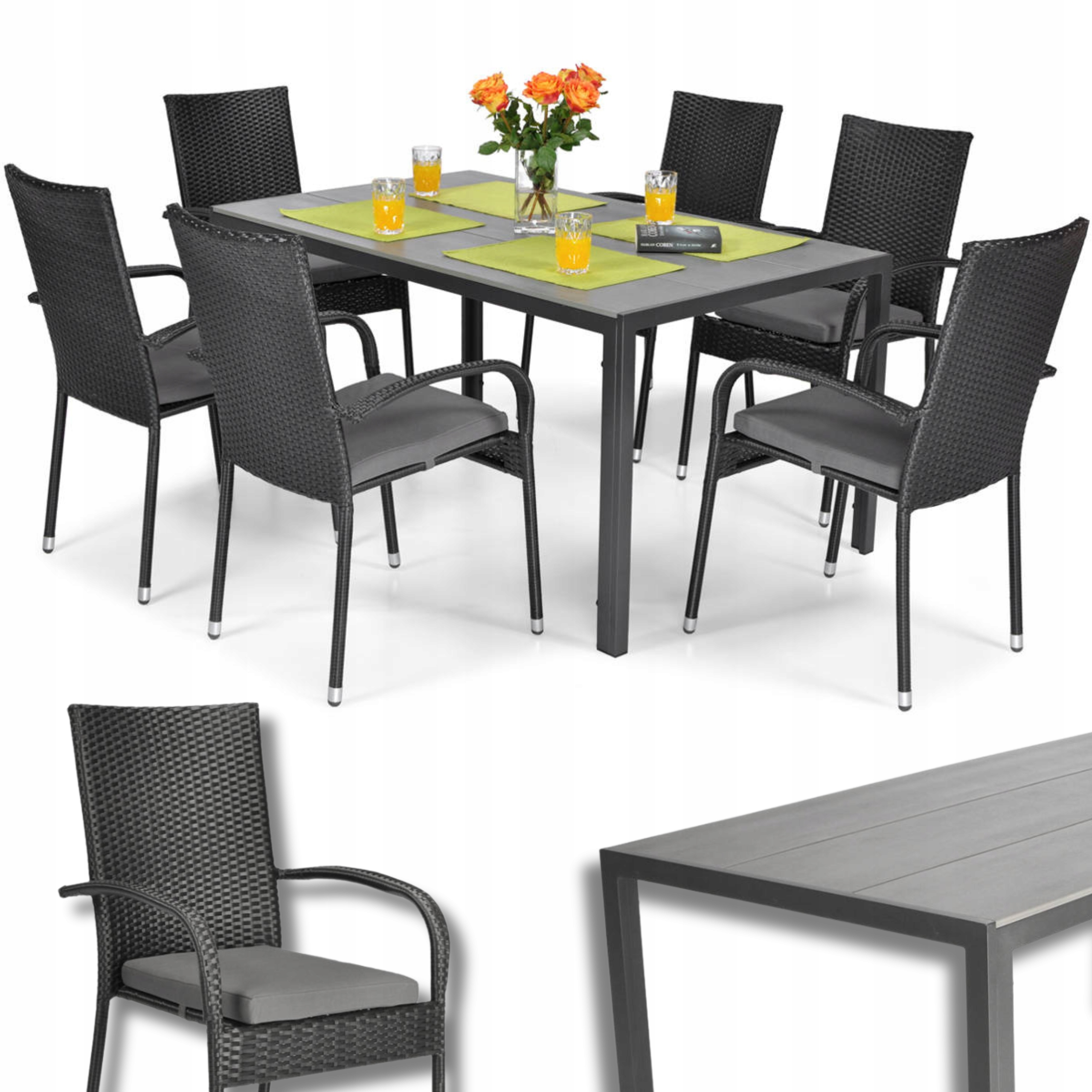 Набор садовой мебели 6 -личный обеденный стол стул Technorattan Black
