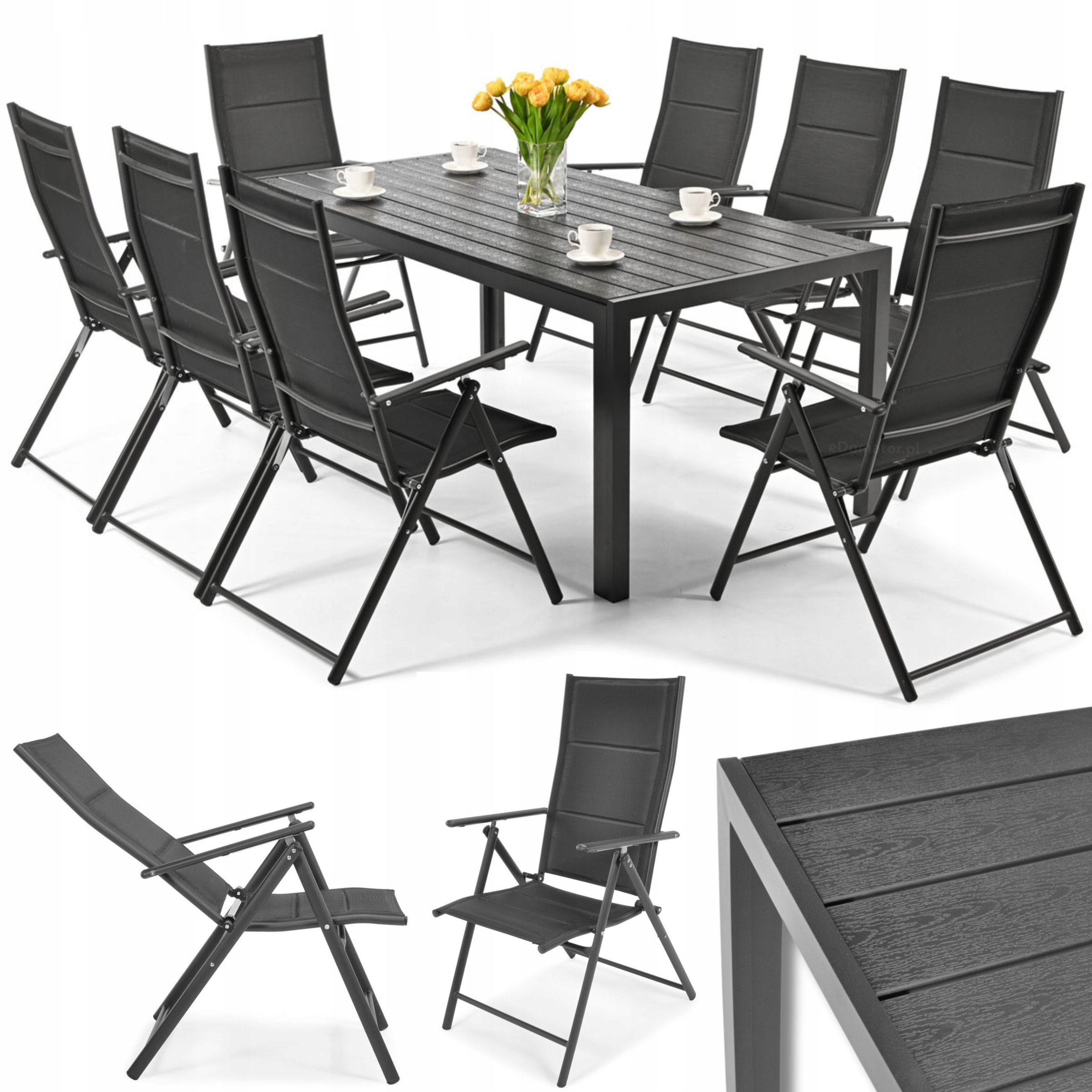 набор черно-личной садовой мебели из 8 человек, стол из 8 складных стульев