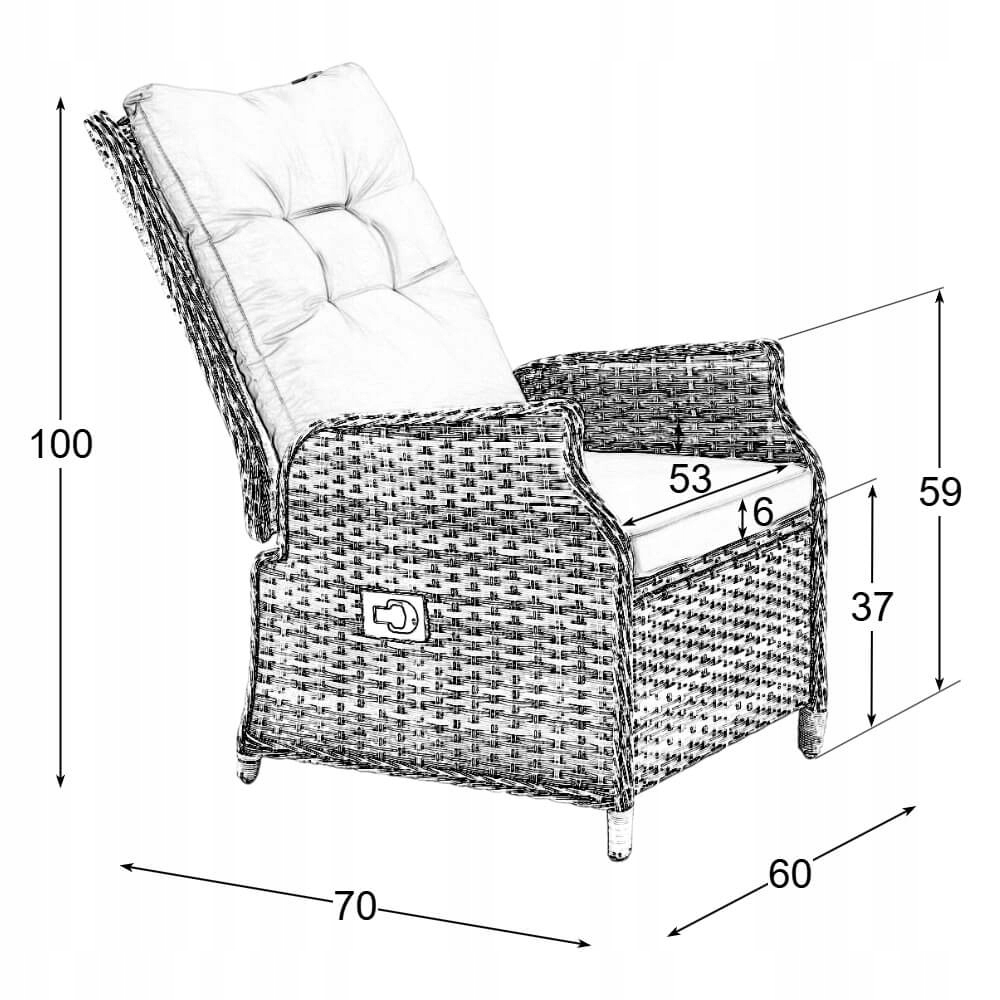 Самым большим преимуществом комплекта ALICANTE является регулировка спинки, которая позволяет настроить положение сидения в соответствии с вашими индивидуальными потребностями - от удобного положения для разговоров до полулежащего положения, идеального для отдыха.