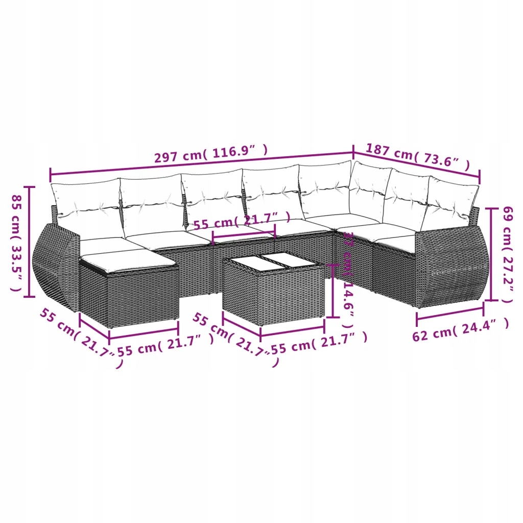 Комплект садовой мебели из черного полиэтиленового ротанга с подушками, размеры: 62x62x69 см.