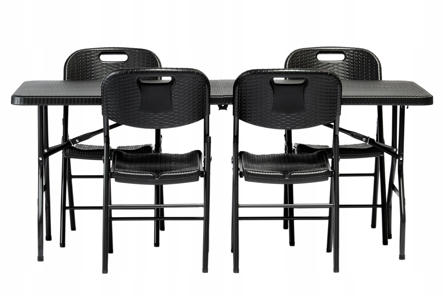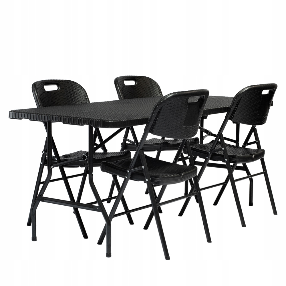 набор садовой мебели , состоящий из 4 черных стульев складывания и 1 черный складной стол (имитация Ратана) является практическим и элегантным раствором для сада, терраса или другого.