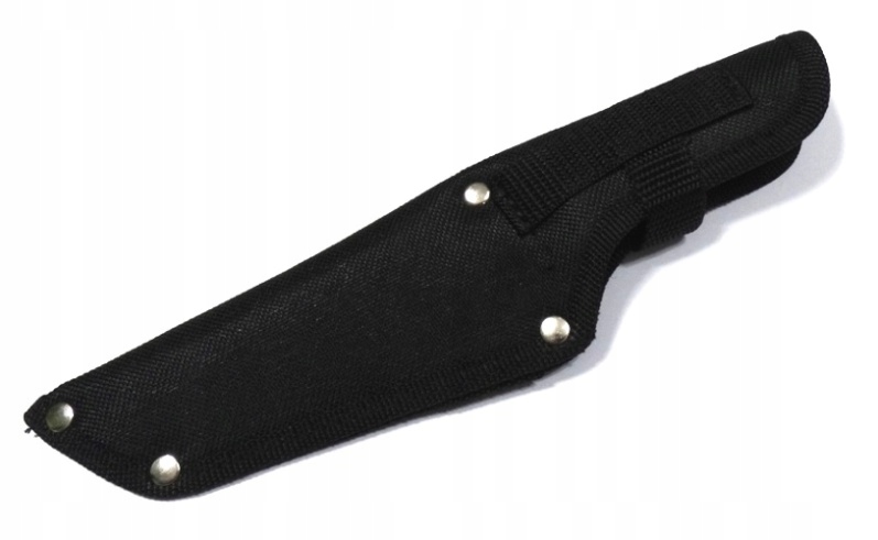 Комплект: нож с ножнами. Ножны изготовлены из ленточного материала. Вес ножа 250г. Общая длина28см. Длина ручки 14см. Ширина лезвия в самом широком месте 2,5см.