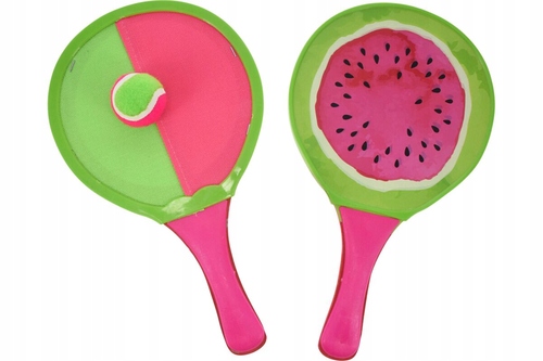 В комплект входят: две двусторонние ракетки с размерами: 33 x 19 см и 2 пластиковых шарика на липучке.