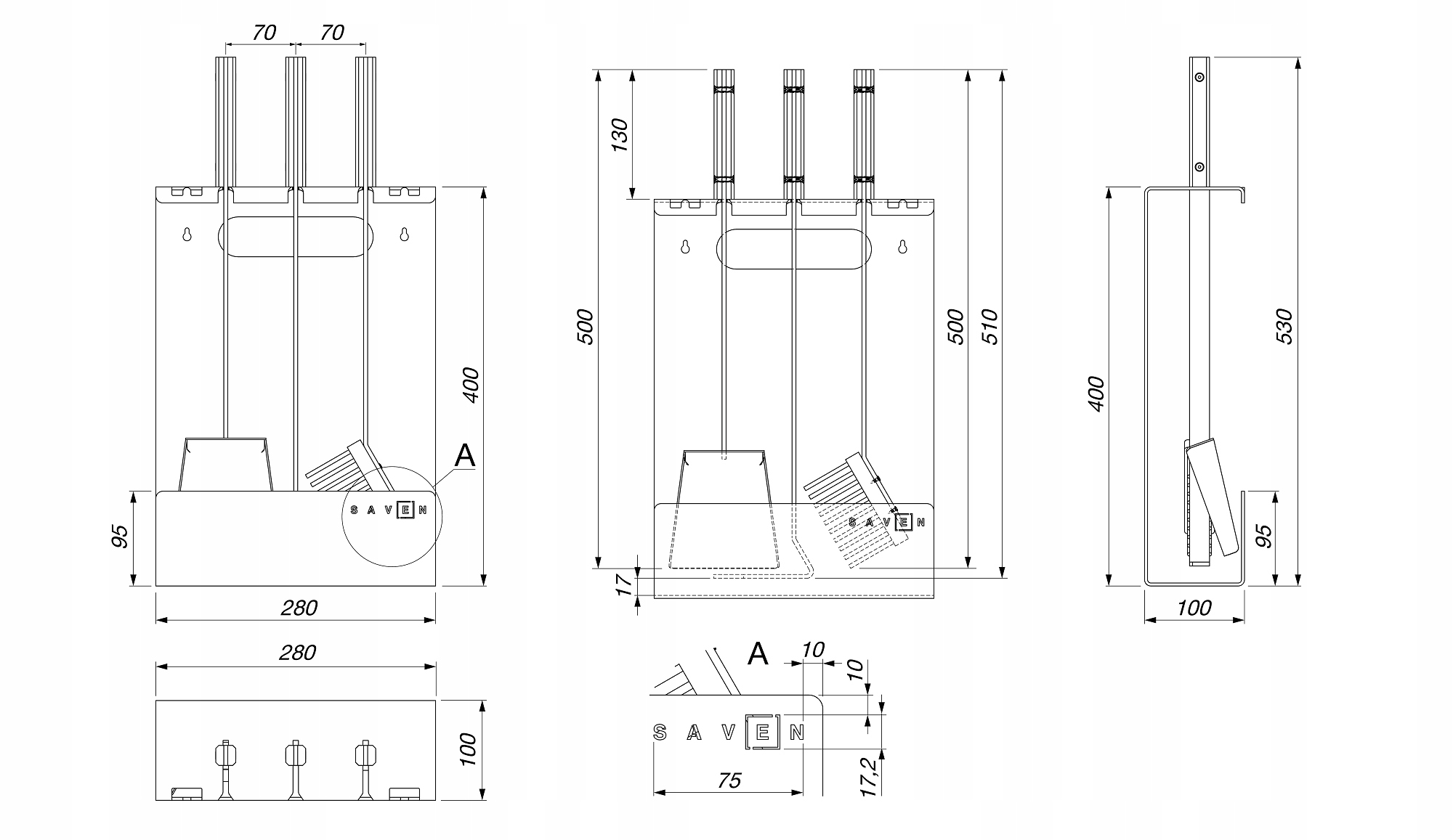 Комплект SAVEN — элегантное и функциональное дополнение к вашему камину, выполненное из черной стали. В комплект входят необходимые инструменты для обслуживания: