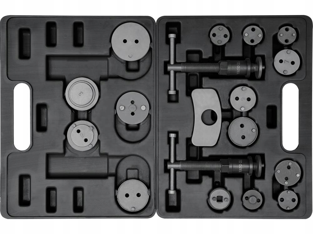 В продаже имеется набор для отжима поршней Yato, состоящий из 18 предметов. Товар оригинальный и упакован в заводскую упаковку.