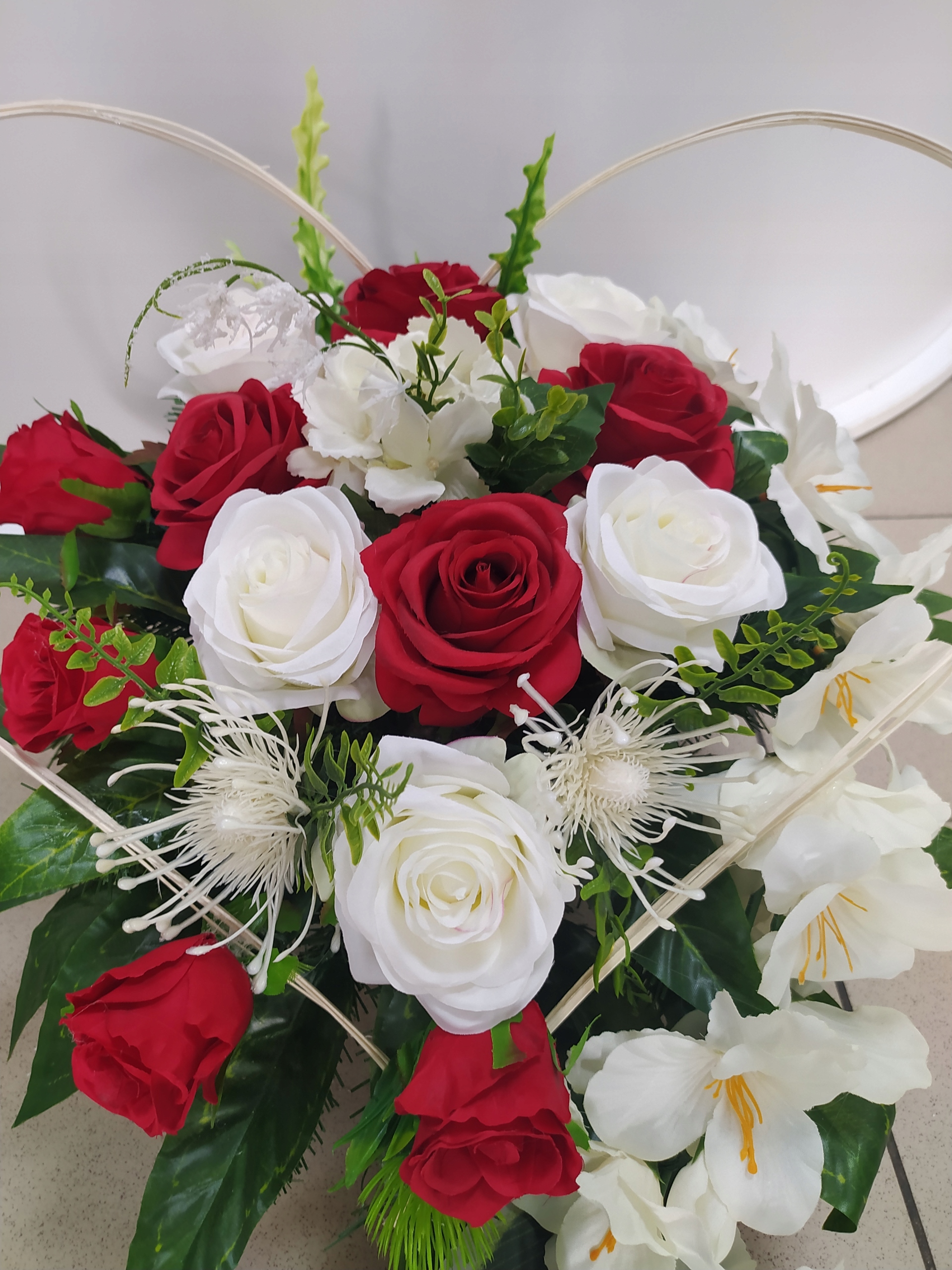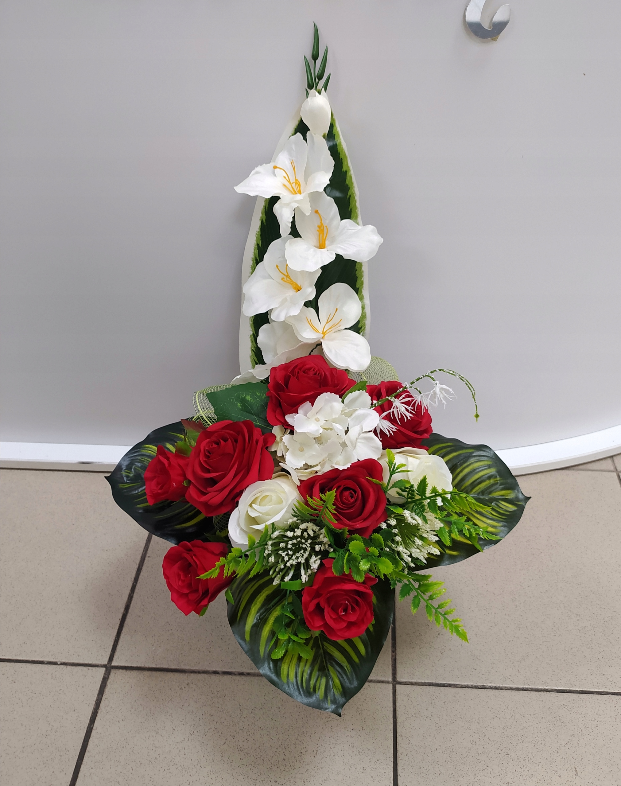 Цветы качественные, работаем с ними уже много лет. Композиции утяжелены, что делает их устойчивыми на могиле. Размер и цвет могут незначительно отличаться в зависимости от того, как мы расположим трость, и от настроек вашего монитора.