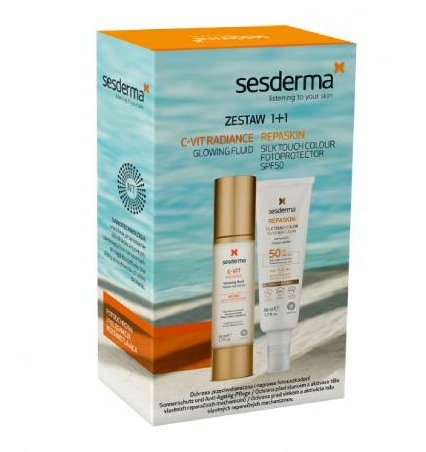 SESDERMA REPASKIN SILK Touch set липосомальный солнечный фотопротектор SPF50 + крем C-VIT Radiance