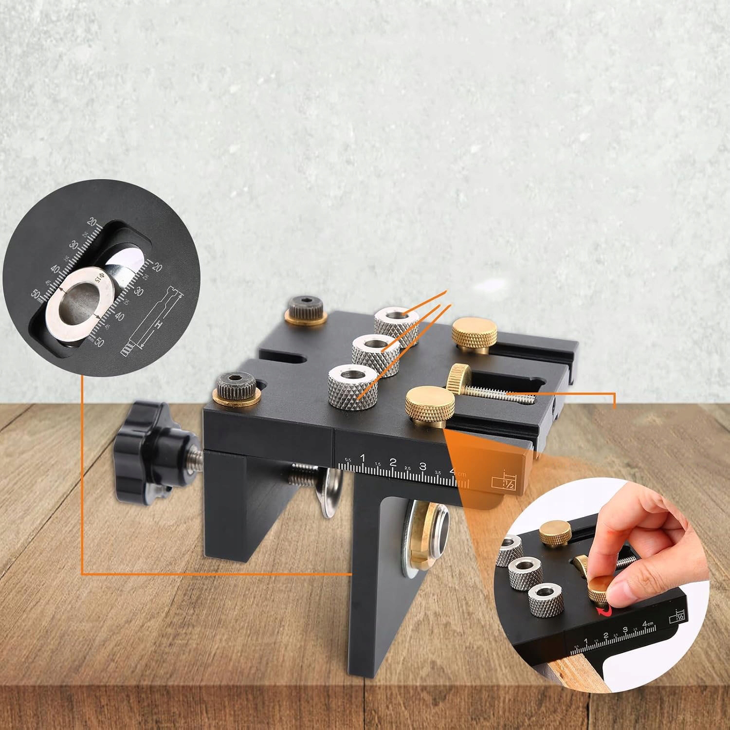 🔦🔦🔦【Идеально подходит для мебели с досками】Ручное обучение столярным размерам для дюбельных соединений 8/10/15 мм. Может использоваться для измерения положения отверстия, донного сверления и эксцентрикового сверления. Высота и глубина проема регулируются. Точное позиционирование. Предназначен для сверления и соединения досок, что делает его идеальным инструментом для деревянной мебели.