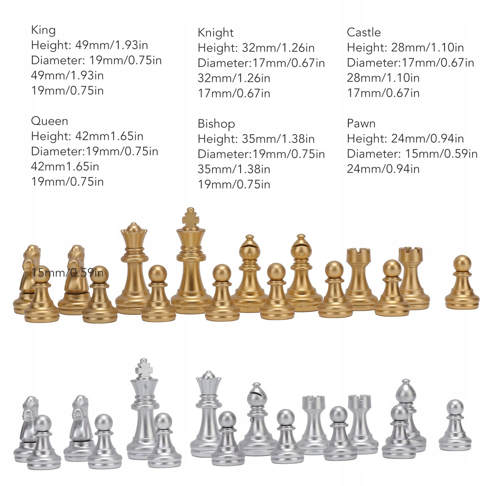 2. Золото и серебро: в упаковке 32 шахматные фигуры, 16 штук золотого цвета и 16 штук серебряного цвета, которые красивы и не выцветают.