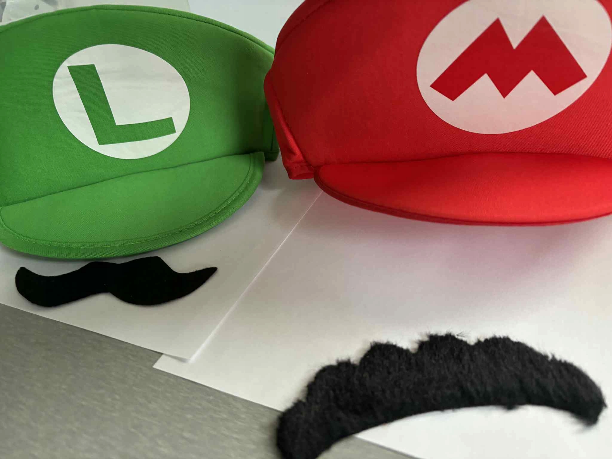 Набор шляп с усами Марио и Луиджи. Шляпы Super Mario Bros. Шляпа на Хэллоуин.